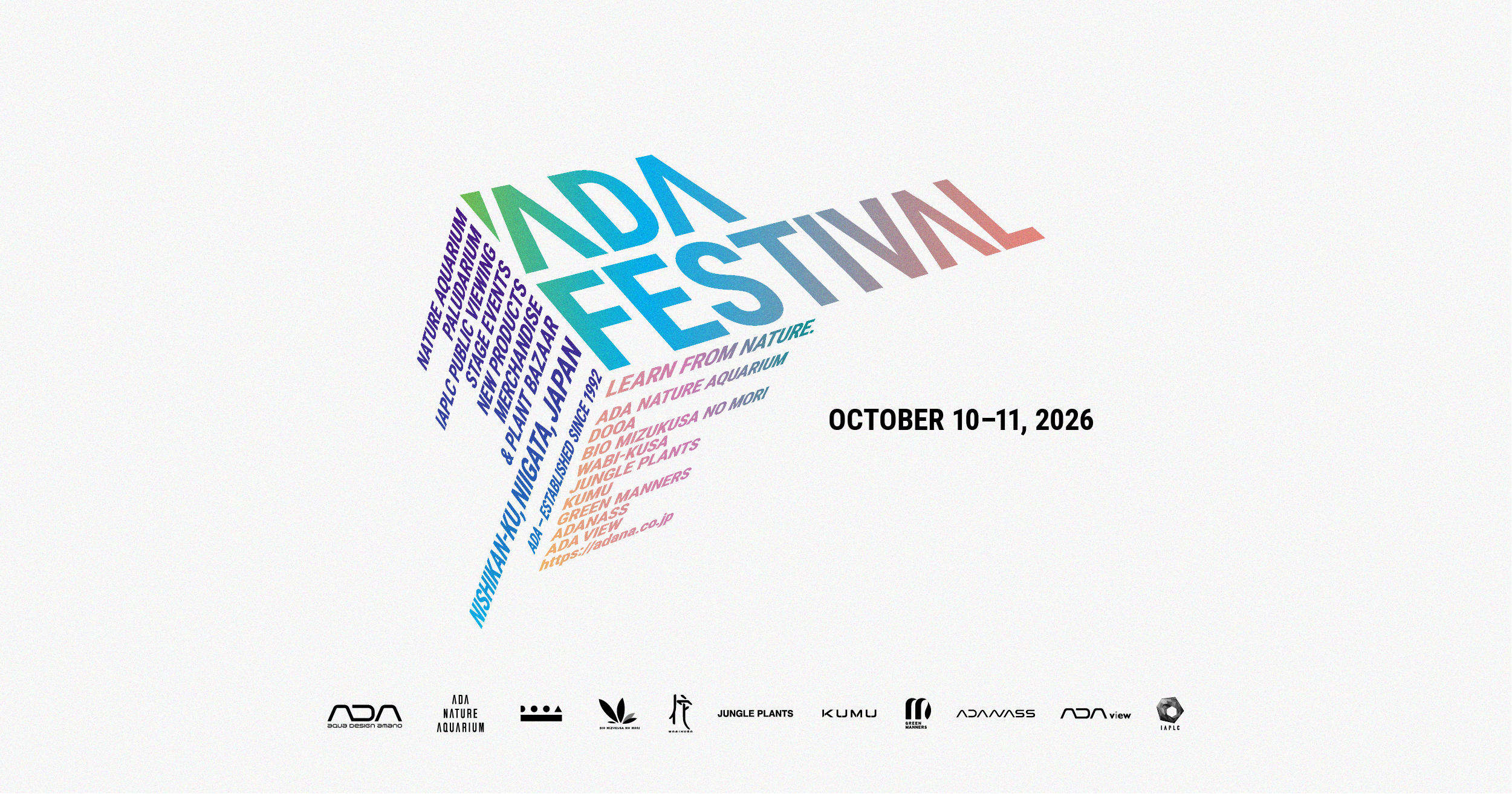 ADA is planning to host the opening of the Nature Aquarium Gallery and the IAPLC results announcement event, “ADA Festival 2026,” at ADA Headquarters over two days, Saturday, October 10 and Sunday, October 11, 2026, prior to the start of the tour.