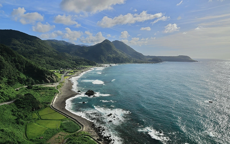 - Sotokaifu coastline in Sado, an island of rich history and relaxed atmosphere, only accessible by ferry and hydrofoil high‐speed boats from Niigata.