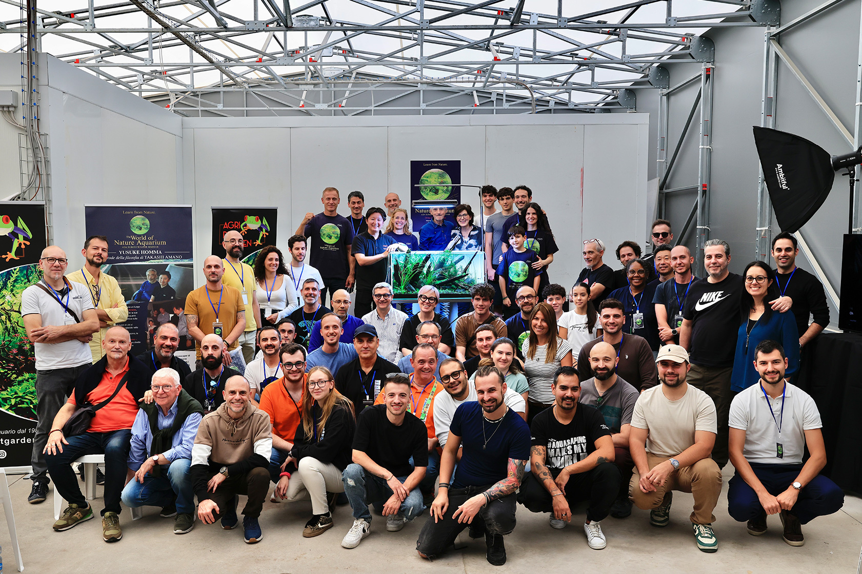 Agripet Garden, located about an hour from Venice, is a unique shop specializing in aquatic plants and paludariums, but also features reptiles, birds, and jungle flora. Although the event was capped at 50 attendees, around 70 aquascaping enthusiasts showed up — a clear sign of the deep passion for the Nature Aquarium in Italy. Among them were three individuals who had also attended Amano’s event 23 years earlier. Many brought along their vintage ADA photo books, sharing stories and memories — a moving testament to the lasting impact of Nature Aquarium around the world.
