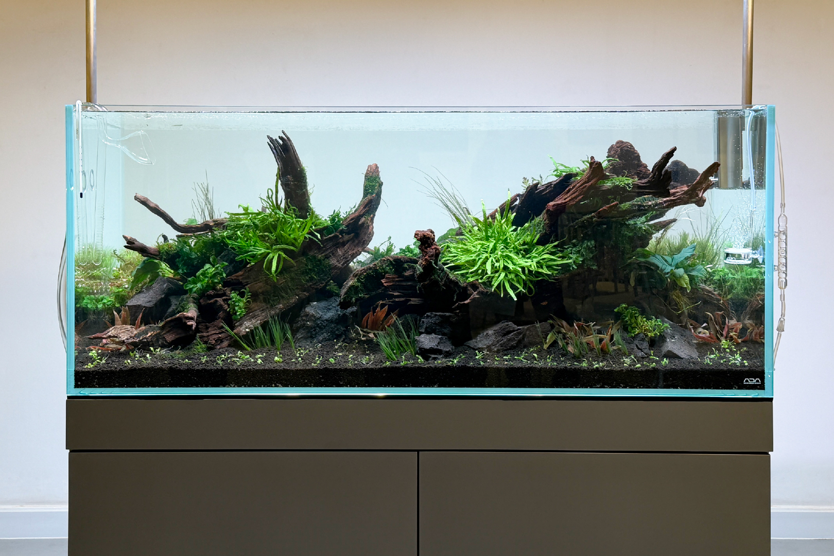 At the heart of the event stood a W1200 mm aquarium created by ADA SUIKEI Creator Araki. The layout embodied the essence of Nature Aquarium design, pairing a bold concave composition with finely detailed planting. The work was admired to a highly engaged audience, including many Vietnamese aquascapers known for their consistent top placements in the IAPLC.