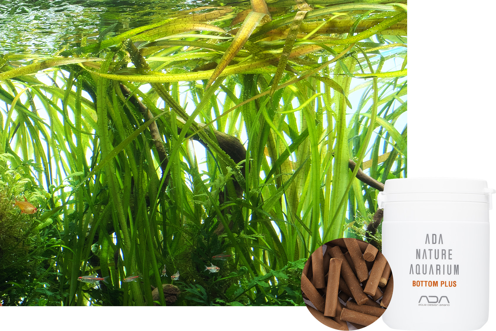 As it is produced from the same natural soil materials used in Aqua Soil, the design minimizes residue remaining within the substrate. To maintain brightness and openness through the center of the layout, sufficient height of Vallisneria neotropicalis on both sides was essential. Fertilization with Bottom Plus was therefore applied once per month.