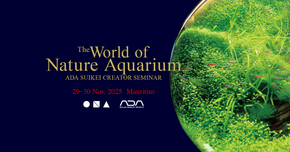 ADA SUIKEI Creator Daichi Araki will host a Nature Aquarium seminar in Mauritius, on November 29-30, 2025. During the event, he will give live demonstrations of creating a Nature Aquarium using a W900mm Cube Garden and a Neo Glass Paluda 300.