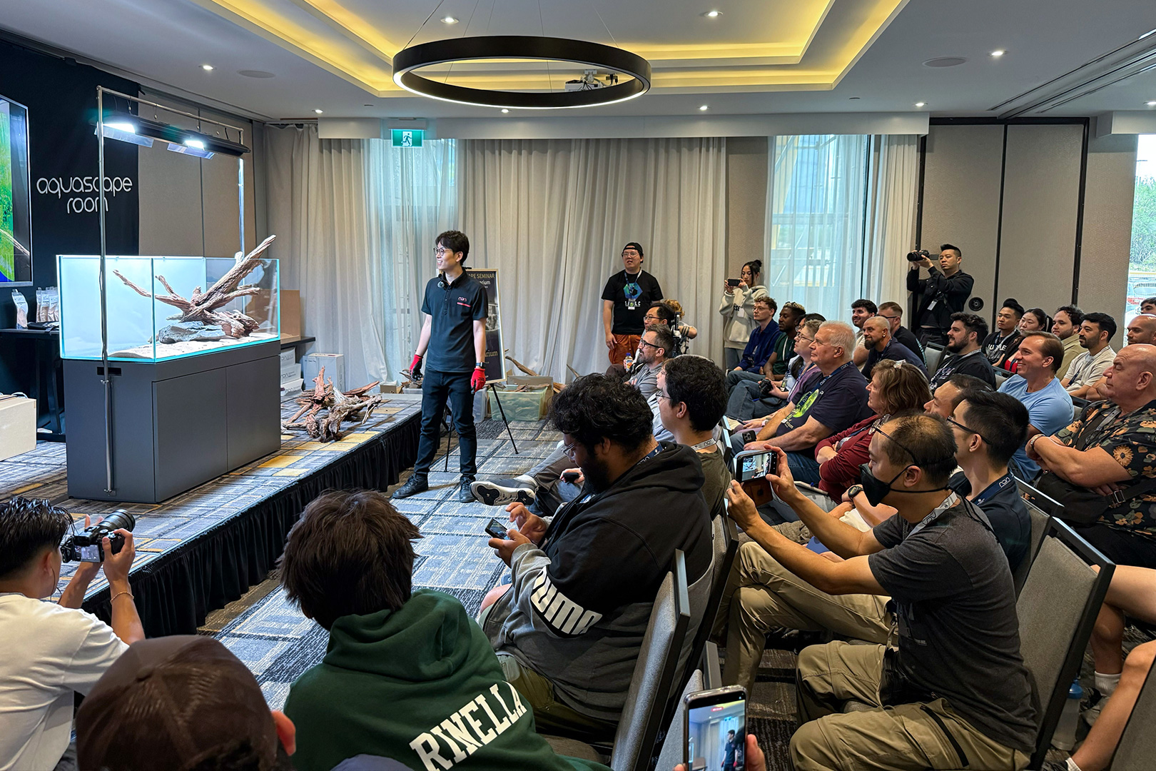 2年連続で行われた水景コンテストでは、昨年のコンテストよりもレベルが上がっており見ごたえのあるものでした。荒木 大智とアメリカのアクアスケイパーであるスティーブン・チョン氏による水景のフィードバック、最後には表彰式も行われ、解説に熱心に耳を傾ける姿や参加者の熱意を感じることができました。