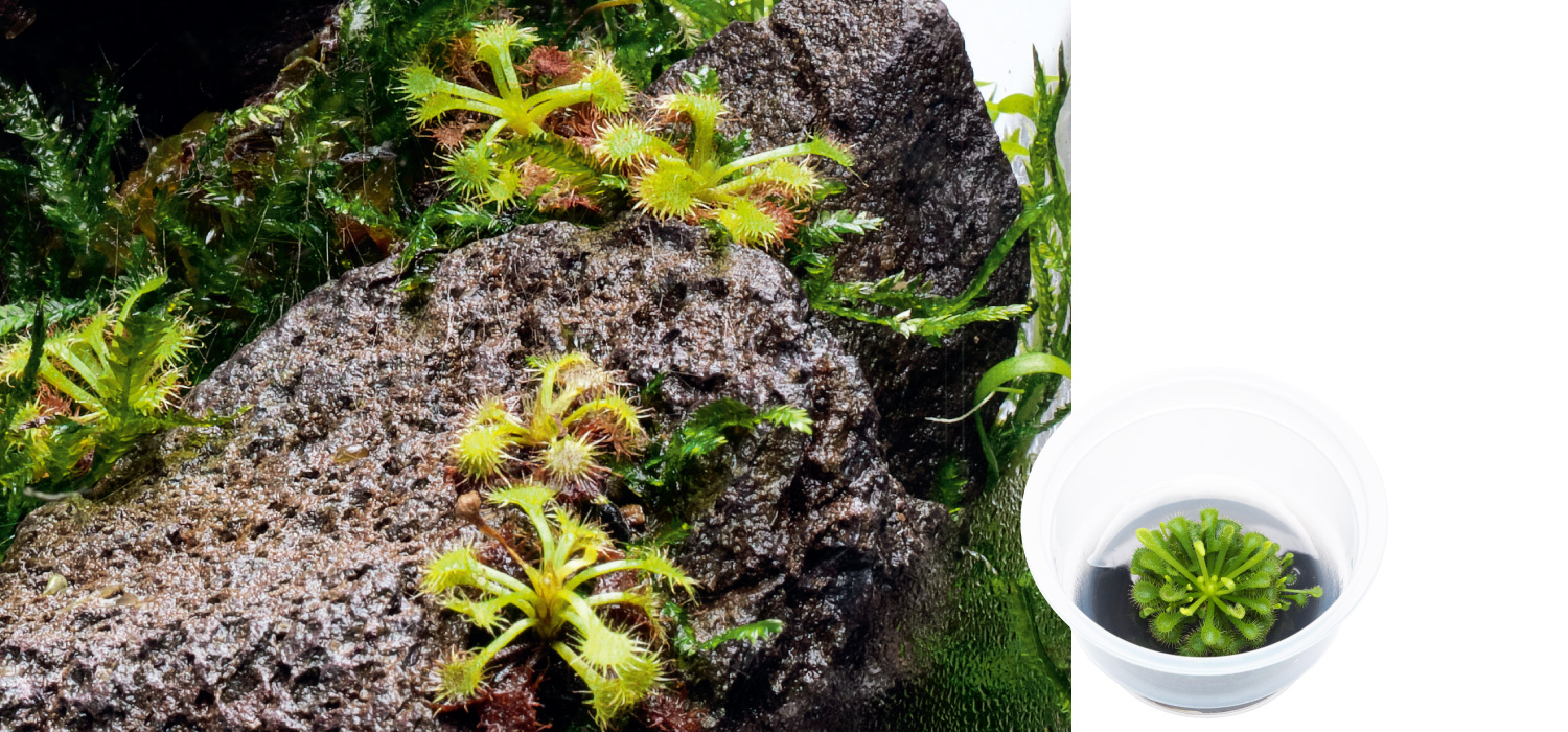 日本にも自生している小型のモウセンゴケ。同心円状に模様のように葉を広げ、ゆっくりと生長する。