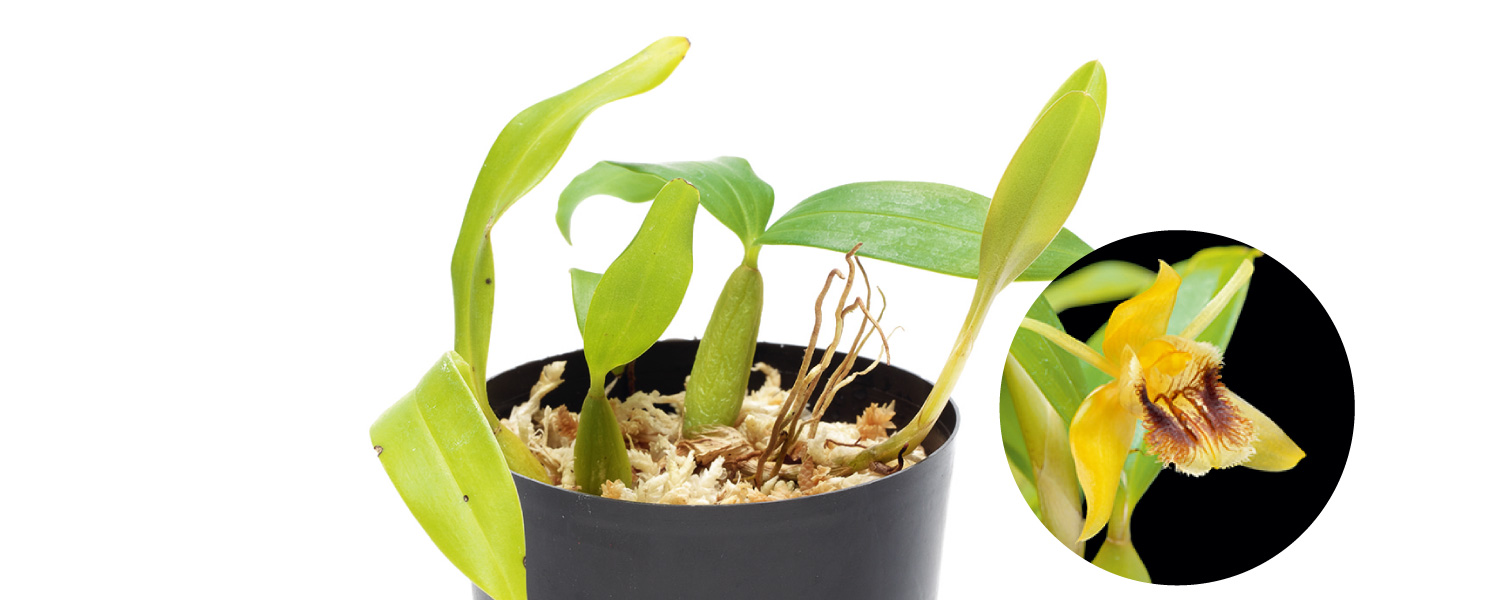 1つのバルブに1枚の細葉を出す。大きく膨んだバルブが赤褐色になるとしだいに花芽を出す。