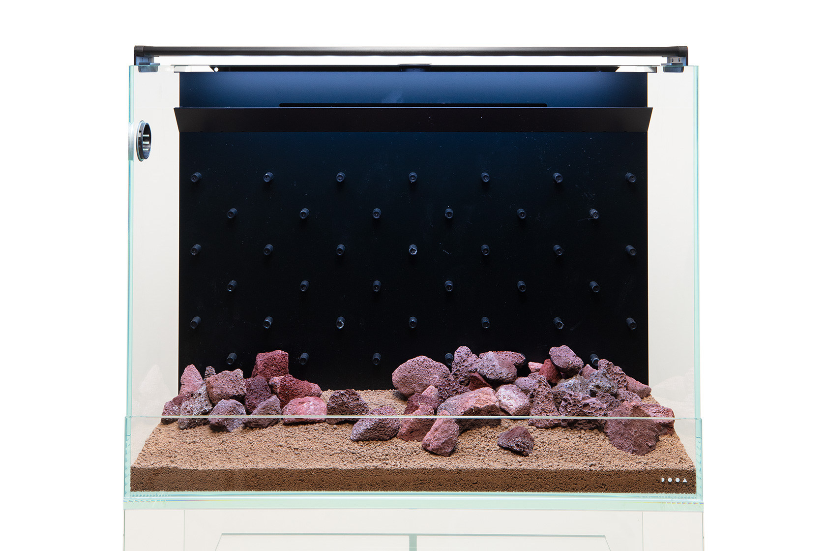 ③ コルク素材の配置植物はあらかじめコルクにテララインで巻きつけておきます。水槽内の手が入りにくい箇所などの作業を減らすことでレイアウト精度を高めることができます。レッドラバストーンはコルクを支える役割もあるため、素材の形に合わせてパズルのように組み合わせていきます。