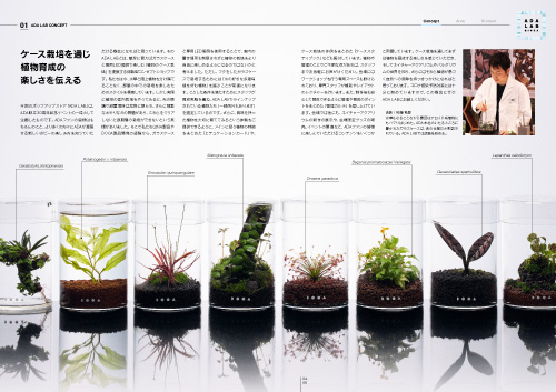 特集の「ADA LAB」はADA設立30周年記念イベントの一環として企画したもので、LED照明による「植物のケース栽培」を提案する体験型コンセプトショップです。店舗の概要やコンセプト、商品情報なども多数掲載。