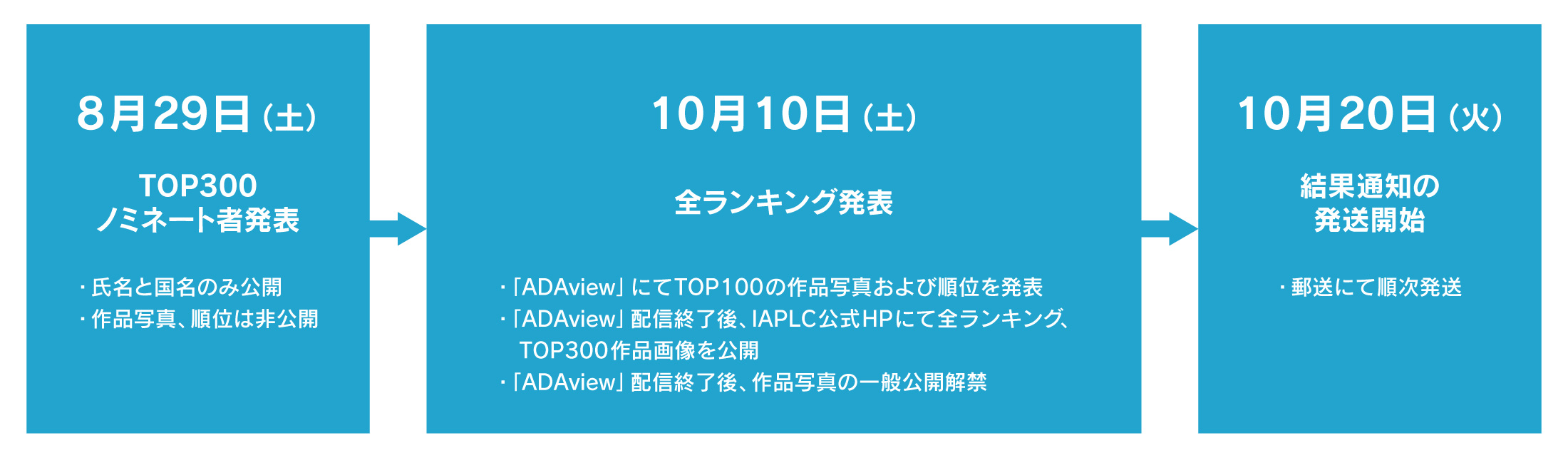 最終的な世界ランキングは、10月10日(土)にADA公式YouTubeチャンネル「ADAview」にて公開いたします。配信ではTOP100の作品写真および順位を発表し、配信終了後に全ランキング一覧をIAPLC公式HPにて公開予定です。