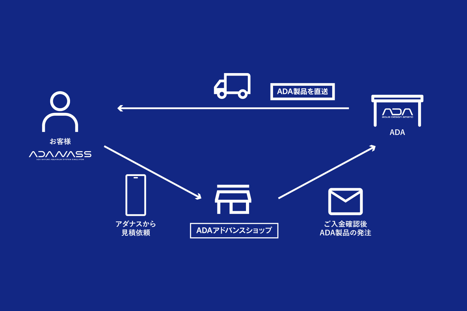 ▼ADANASSを使用したADA製品直送の流れ